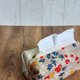.开口利用布片交错产生自然的夹力, 再扣上扣子, 即使面纸剩少少也不易往下掉。