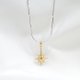 <Polaris Necklace> 以北极星永恒不变的璀璨光芒为灵感,透过不对称的长短链设计,捕捉北极星独特的闪耀瞬间。别致的蛇骨链增添细腻层次,使其如星辰般引人注目。而坠饰采用的 14k 复合式电镀,则为这件作品注入了别致而独特的质感。