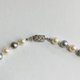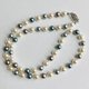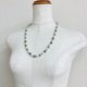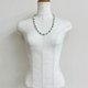 采用日本制玻璃珍珠,以独特的原创涂料层层叠加上色,呈现细腻质感与温润光泽。珍珠色彩融合了蓝色、灰色、奶油色等多种不同色调的玻璃珍珠,交织出柔和而富有层次的迷人色彩。珍珠之间点缀着约 2.5mm 的树脂珠,增添细致的变化。每颗玻璃珍珠直径约 8mm,项链总长约 60cm,是方便配戴于衣物外的 matinee 尺寸。项链扣则采用原创设计的日本制插入式款式。
