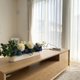 作品特色:选用进口高阶拟真花材,较不易沾染灰尘,以特级拟真花材手工制作而成的植栽花饰。