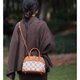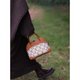 手提+可拆卸肩带,多背法使用。纯色部分为头层牛皮,拼接中式真丝宋锦面料
