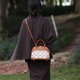 handmade全手缝真皮斜挎包手提包手作貝殼包中式真丝宋锦黑金定胜