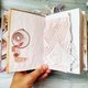Contains: tea dyed paper, archival papers, lace, charms, fabric cover