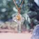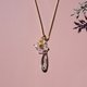 以矢车草花朵的造型雕刻水晶,搭配黄水晶与绿紫水晶,
