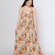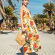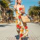 一件宛如夏日微风般的吊带背心裙,缀满色彩斑斓的植物图腾,如夏威夷午后摇曳的热带叶影。