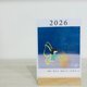 2026 木座桌历 尺寸:11*15 厘米 附木座一个 2026年的主题经文是,神说要有光,就有光。 双面设计 每个月会有不一样的插画与经文 纸质今年选了方便书写的莱妮纸, 适合办公使用,也适合居家装饰。