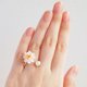 Tsumami-zaiku water lily ring ≪Details≫ At Hanairo Komachi, we handle works that have been arranged in a modern way to make it easy to use, a traditional craft from the Edo period. This is a water lily ring with Tsumamizaiku. I used pearls for decoration. It is an item with a strong presence while giving a cute impression. ≪Ring Parts≫ A free size fork ring with an inner diameter of 20mm. The surface is plated to prevent rusting, so it is recommended for everyday use. Material: Metal (with plating on the surface) Color: Gold ≪Size≫ Water lily (length: about 1.8 cm, width: about 1.8 cm) Ring (inner diameter: about 20mm) *Please read before purchasing. [Precautions for use/storage] ・Wetting with water may cause deformation and damage. If it gets wet, gently wipe off the moisture and dry it. ・Sweat and sebum cause deterioration such as discoloration. be careful. ・Avoid pressure or shock as it may cause deformation and damage. ・Keep out of contact with air as much as possible. ・The fabric will fade if exposed to the sun. Keep out of direct sunlight. [About the posted photo] The published photograph is a sample to the last. The color of the actual product may differ from the photo depending on the shooting conditions and the monitor environment. In addition, since this is a made-to-order product, the size, balance, color, and pattern may differ slightly between the product you receive and the photo. 【Prohibited matter】 ・Purchased only for personal use (for personal use or as a gift for someone close to you). Purchases for commercial purposes are not permitted. ・Purchase by proxy for the purpose of resale or profit is prohibited. Purchases for the purpose of producing counterfeits are also prohibited. ・The copyright of the work, the idea of the work, the posted image, and the product description is owned by Hanairo Komachi. In any case, imitation of works, plagiarism or arrangement of ideas of works, reprinting or unauthorized use of posted images and product descriptions are prohibited.