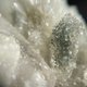- 闪耀的绿色鱼眼石长了在白水晶簇上面。