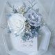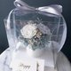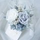 使用1朵白色+1朵灰蓝色日本大地农场有机永生不凋玫瑰/不凋绣球,采用食用级染料。白色灰蓝色玫瑰+低调超美渐层蓝色系绣球,好好照顾可以观赏3年以上喔~若需做成捧花请来信定制报价喔~