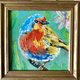 - 鸟画原件,罗宾鸟油画布,微型墙壁艺术。 画作尺寸 10 x 10 cm (4" x 4") 艺术家在画布面板上绘制的油画。 明亮多彩的油画颜料。 艺术家创作的每一幅油画都是独一无二的。