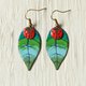 Ladybug Earrings, Enamel Earrings, Leaf Earrings, Nature, Forest Earrings