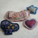 这款胸针是在 8 盎司靛牛仔布上单独手工刺绣的。 里面放入棉花,使其具有立体感。 织物的切割边缘经过防磨损涂层处理。 尺寸:约 50 毫米长 x 60 毫米宽
