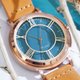 蓝面镂空罗马字钉穿搭手表 - 蓝面土黄麂皮表带