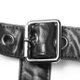 领口孔洞加调节扣可调节松紧。两边手臂各三根皮袢,金属调节扣