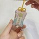 3. 签诗、棉袋一并放入御守的袋子,将两条棉线一起穿过去,然后从绳结上的小孔洞穿出,即完成!
