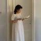 - 日本进口刺绣面料, 法式复古感白色短袖连衣裙。