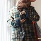 - 棕綠格軟糯羊毛呢面料 90%羊毛