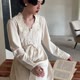 - 新中式改良V字立領,延長脖頸線條 胸前+袖口刺繡貼花,重工精緻 寬松版型,腰部抽繩系帶,可調節 溫柔奶油灰,好穿不挑人