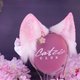 粉色狐狸造型的耳朵,约 3.25 英寸高,采用奢华人造毛制成,点缀施华洛世奇水晶,并透过喷枪彩绘、金属圈、樱花吊饰及耳后可拆式蝴蝶结装饰。耳朵内嵌金属骨架,可弯曲塑型,固定于金属头箍上。