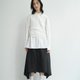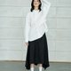 使用三角形下摆营造不规则设计,前开襟设计使穿着者方便穿脱及造型,建议搭配不同类型的内搭及上身