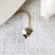Cute little firefly charm necklace. The body is shade in gold tone of brass with the white color enamel in his bottom. Beautiful tiny charm on your every day costume. The necklace chain is gold-plated.