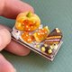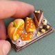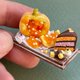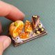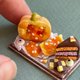- Miniature Halloween set with pumpkin and sweets. The miniature is made on a scale of 1:12. All parts are fixed with glue. Polymer plastic, acrylic paints, acrylic varnish and cardboard are used as materials for manufacturing. The price is for 1 piece.