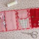 This pattern includes step-by-step photo instructions and full-size pattern pieces to make a mini roll-up sewing organizer. It is perfect for everyday use or as a travel sewing kit, because it keeps all the necessary things, that you might need during your travel to repair your clothes or sew on buttons. This organizer can also be a great gift for everyone. The organizer has a felt panel to hold needles, safety pins and spare buttons, and two pockets with flaps: one is for small scissors, and the other is for some small sewing items (bobbins with threads for example).