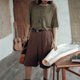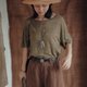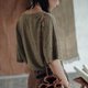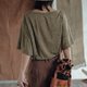 青苔綠 亞麻色織寬松短袖上衣 簡約百搭T恤