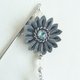 Tsumami Zaiku的花朵,使用光泽感的烟熏绿与灰褐色布料拼接而成。花瓣经过独特技法固定,不易变形。