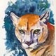 Mountain Lion Painting Animal Original Artwork Wild Cat Watercolor Pet Portrait