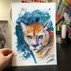 Mountain Lion Painting Animal Original Artwork Wild Cat Watercolor Pet Portrait - 海报/装饰画/版画 - 纸 咖啡色