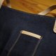 此款不同于基本款,皮革皆经过磨边处理,使用厚磅丹宁布质感加倍,口袋开口边缘增加皮革包覆可产生手泽,强烈建议不做清洗,保持丹宁布上浆的质感更加硬挺。