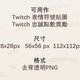- Twitch贴图组合,可设为直播频道的表情符号贴图或忠诚点数奖励。 尺寸为28x28px,56x56px,112x112px。 格式为去背透明PNG档。 贴图可直接上传至Twitch频道,无需做任何调整。
