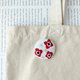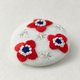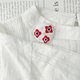 这是一款色彩鲜艳的红花刺绣胸针,在花朵周围特别使用银丝线缝制出点点星辰。