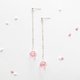 - 花气质粉红色水晶玻璃球垂吊长耳环(银色) 可换耳夹式