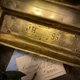 #墨水瓶插件,使用的是老式玻璃,因此边缘有明显的磕碰损坏等历史痕迹,但损伤仅止于边缘,底部没有裂痕,可正常使用,放进铜槽内看不太出来,底部有法文J.H. Depose' 96品牌印记。
