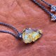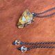 - 这条项链的正面采用长野县产的一簇水晶制成吊坠。 狂野而有光泽的水晶被编织成镂空框架以展示它。 这块烟晶的背面附着有铁,类似金色的治疗剂。