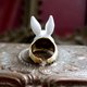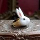 **白色兔子头戒指 镀9K真黄金 不掉色不氧化 轻珠宝 开口可调整尺寸**