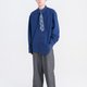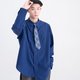 蓝色超宽松廓形长袖衬衫 男女同款 独立设计 日系休闲 不对称设计
