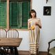 方领长款连衣裙,宽肩带。 沿下摆采用宽褶皱设计,后部拉链隐藏在接缝处