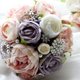 烟熏粉的牡丹花是花束的主要色调表现,选用进口高级花材制作,呈现出自然手绑花的感觉。配饰部分以金色与银色为主,并加上珍珠镶嵌的饰品与珍珠串,让花与华丽的饰品间产生一种柔和感,衬托出新娘高雅的气质。