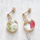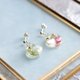 不对称的设计,一边镶嵌着叶子与白花,另一边则是红花与贝壳,为这款耳环增添了几分玩味。