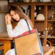 - Tote Bag made from hand weaving Krajood combined with Cow Leather and Canvas created the unique design with function for you. Inside have cotton lining with 3 small pockets for carry and help you to organized your small items Size h45 X w45 x d8cm. Model in photos hight 167 cm.
