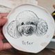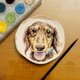 陶土在不规则捏塑成形后,经过第一阶段800度烧成素坯,出窑后再以特殊的高温釉药笔,在素坯上直接描绘宠物肖像,没有擦布能用,画错就要全部重头,是耗时且难度高的定制艺品,画完后再施透明釉,进窑烧成1230度,待几天降温后出窑,就是独一无二的生活器皿。