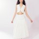— 不规则高腰百褶半裙,一件层次很丰富出街吸睛裙子。做了左右不同的设计,一半百褶一半简约,A字裙摆廓形,增添裙子的俏皮感,同时高腰设计也修饰身材比例,搭配简单上衣也能出彩。喜欢极繁搭配,也可以选择褡片款,长短不同的裙摆错落有致,体现设计巧思,走动时裙摆随风飘摇,显得更加灵动。