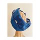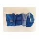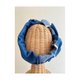 A combination of denim materials in different colors. Accented with pearls.