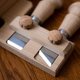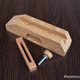 1 oak Kumiko block with 90° angles. On one side there is a groove for trimming strips. They feature thumb wooden screws for quick and toolless adjustment.