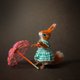 这位 4 厘米高的小小时尚达人,热爱各式精致洋装。但少了这把美丽的阳伞,怎能自在地亮相?小松鼠的身体以钢丝支撑,因此头部、尾巴、四肢与手指皆可自由活动,也能自行撑握阳伞。她将以最完美的姿态抵达您府上。洋装亦可拆卸。