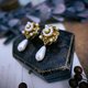 今天这副耳环,像迷你捕梦网,人造珍珠围一圈,外层以繁复的掐丝展现立体度。与传统手工编织的补梦网相同,制工相当繁复华丽。