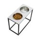 Modern raised bowls for dogs and cats "Lunch Stone" from Harley and Cho made from faux stone and metal. Included two stainless steel bowls.